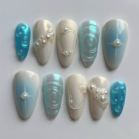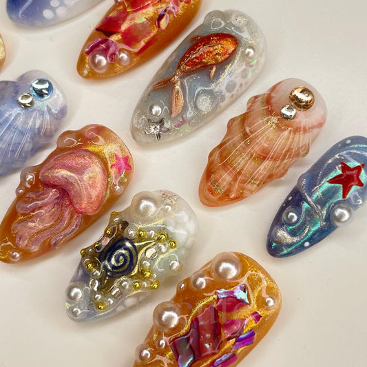Marine Marvels/Handmade Press On Nails/Marine Vibe Style/Long-Lasting Durability/Reusable