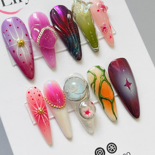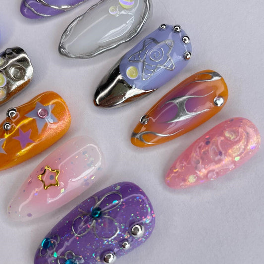 Cosmic Dreams/Handmade Press On Nails/Y2K Style/Long-Lasting Durability/Reusable