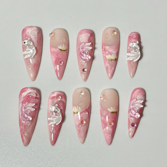 Rose Petal/Handmade Press On Nails/Summer Vibe Flowers Style/Long-Lasting Durability/Reusable