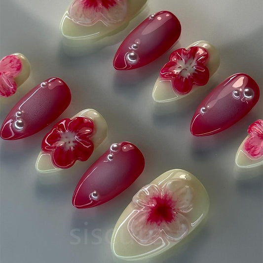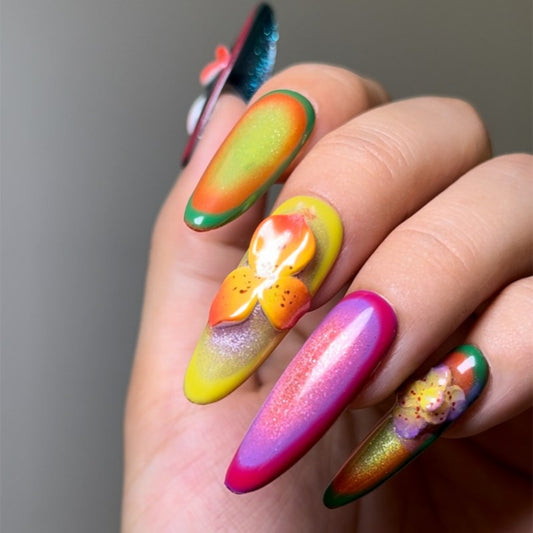 Vacation Blossom/Handmade Press On Nails/Summer Vibe Flowers Style/Long-Lasting Durability/Reusable