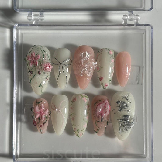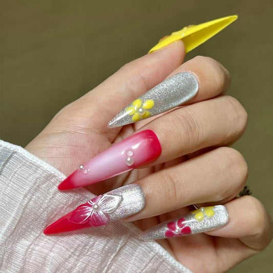 Blossom Breeze/Handmade Press On Nails/Summer Vibe Flowers Style/Long-Lasting Durability/Reusable