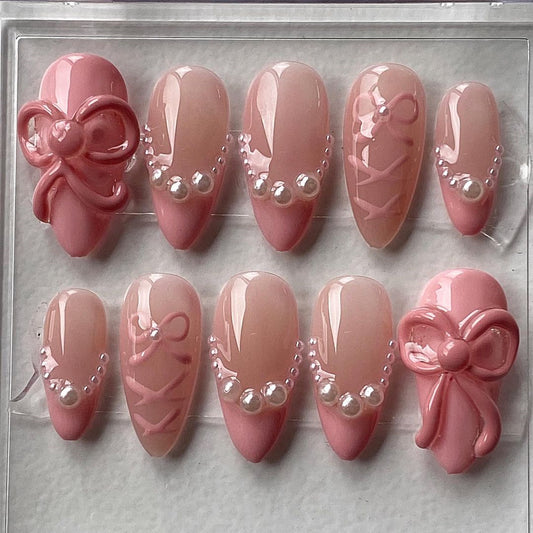 Pink Love/Handmade Press On Nails/Summer Vibe Pink Style/Long-Lasting Durability/Reusable