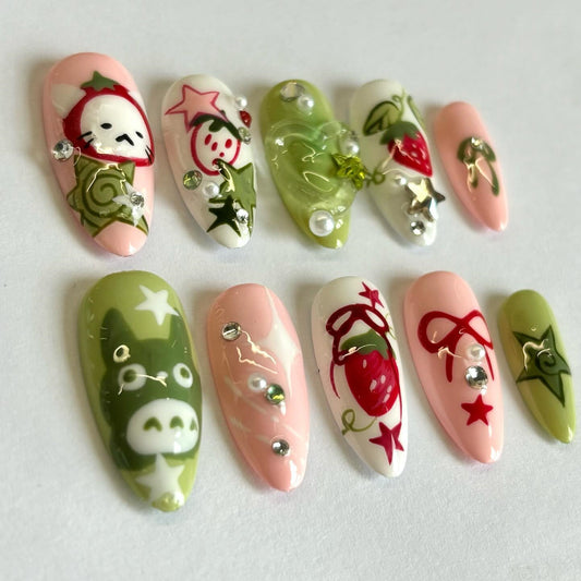 Green Garden/Handmade Press On Nails/Summer Vibe Fruits Style/Long-Lasting Durability/Reusable