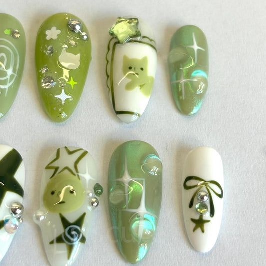 Mint Magic/Handmade Press On Nails/Y2K Style/Long-Lasting Durability/Reusable