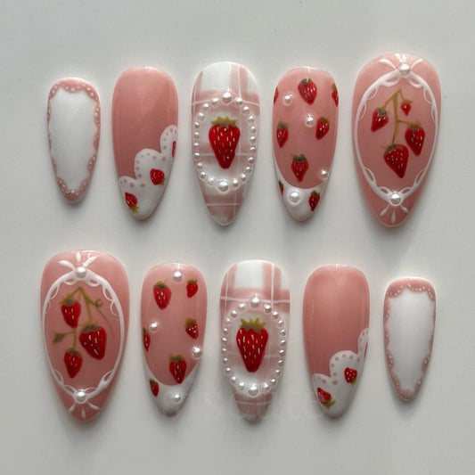 Berry Bliss/Handmade Press On Nails/Summer Vibe Friuts Style/Long-Lasting Durability/Reusable