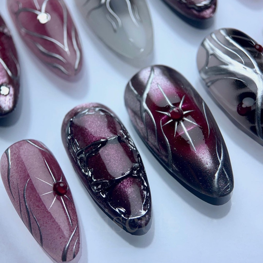 Burgundy Beauty/Handmade Press On Nails/Y2K Style/Long-Lasting Durability/Reusable