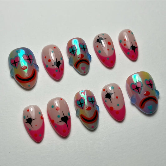 Cheerful Clown/Handmade Press On Nails/Y2K Style/Long-Lasting Durability/Reusable