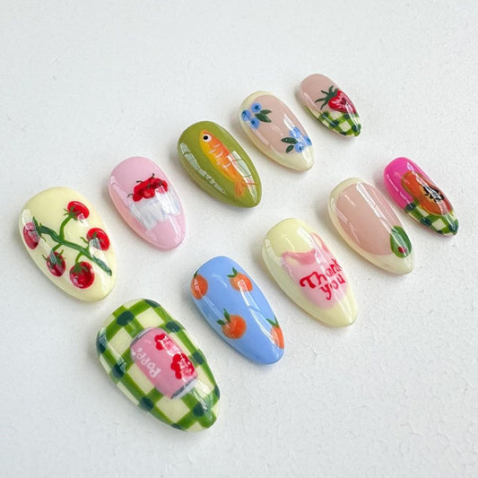 Bountiful Harvest/Handmade Press On Nails/Summer Vibe Fruits Style/Long-Lasting Durability/Reusable