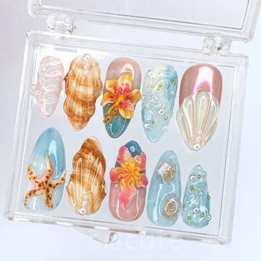 Beachcomber's Treasure/Handmade Press On Nails/Summer Vibe Beach Style/Long-Lasting Durability/Reusable
