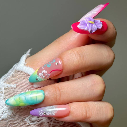 Blooming Retreat/Handmade Press On Nails/Summer Vibe Flowers Style/Long-Lasting Durability/Reusable