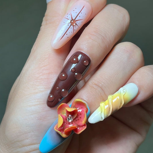 Blossom Breeze/Handmade Press On Nails/Summer Vibe Flowers Style/Long-Lasting Durability/Reusable