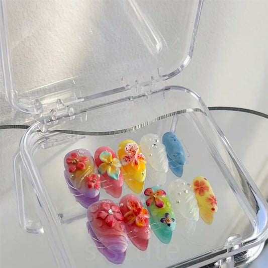 Floral Fantasy/Handmade Press On Nails/Summer Vibe Flowers Style/Long-Lasting Durability/Reusable