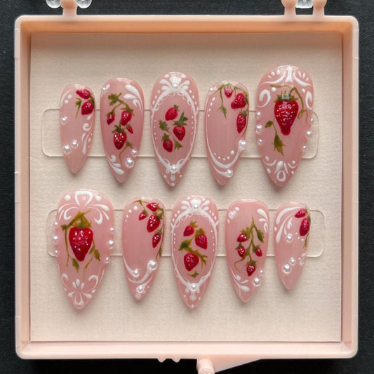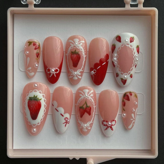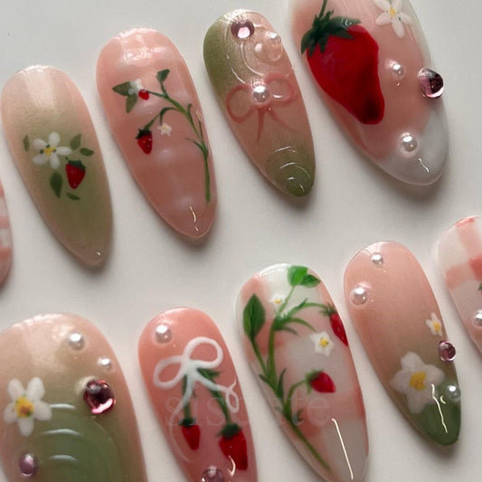 Strawberry Fields Forever/Handmade Press On Nails/Summer Vibe Fruits Style/Long-Lasting Durability/Reusable